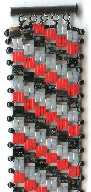 Dragon's Tail Bracelet by Doris Coghill Quadra Lentils and size 6 seed beads are combined in circular peyote to form a very firm bracelet. It looks like a bangle but closes with a slide clasp. Quantity Kit $42.00 Quantity Pattern $10.00 |