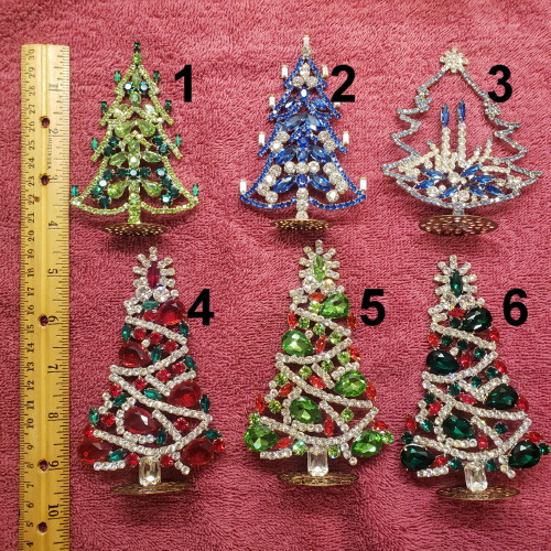 Both new and vintage rhinestones have been used to make these trees $32.00 - 4 inches tall Quantity $45.00 - 5 inches tall #6 no longer available Quantity large Blue and Silver Tree - 10 inches $120.00 Quantity |