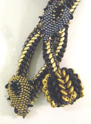Flowing Vine Lariat by Doris Coghill This Lariat is made using Spiral Herringbone (Ndebele). You start with the double size center portion, split it into two pieces and then join it together agin to form the loop that the end of the lariat will pass through when you wear it. Leaves contain Swarovski Crystal and O Bead edging. The ball is made with Quadra Lentils. Kit Price $ 78.00 Quantity Pattern Price $ 12.00 Quantity |