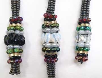 Ndebele Lariat Necklace by Doris Coghill This attractive Lariat necklace is made up of size 11 Japanese seed beads with size 6 and 8 seed beads and Czech Fire Polished Crystals worked in to created the baubles. Main color seed beads is gun metal grey. Kit Price $47.00 Quantity See pictures on the right Pattern Only: Pattern $10.00 Pattern - Quantity |
