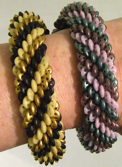 Dragon's Tail Bracelet by Doris Coghill Quadra Lentils and size 6 seed beads are combined in circular peyote to form a very firm bracelet. It looks like a bangle but closes with a slide clasp. Quantity Kit $42.00 Quantity Pattern $10.00 |
